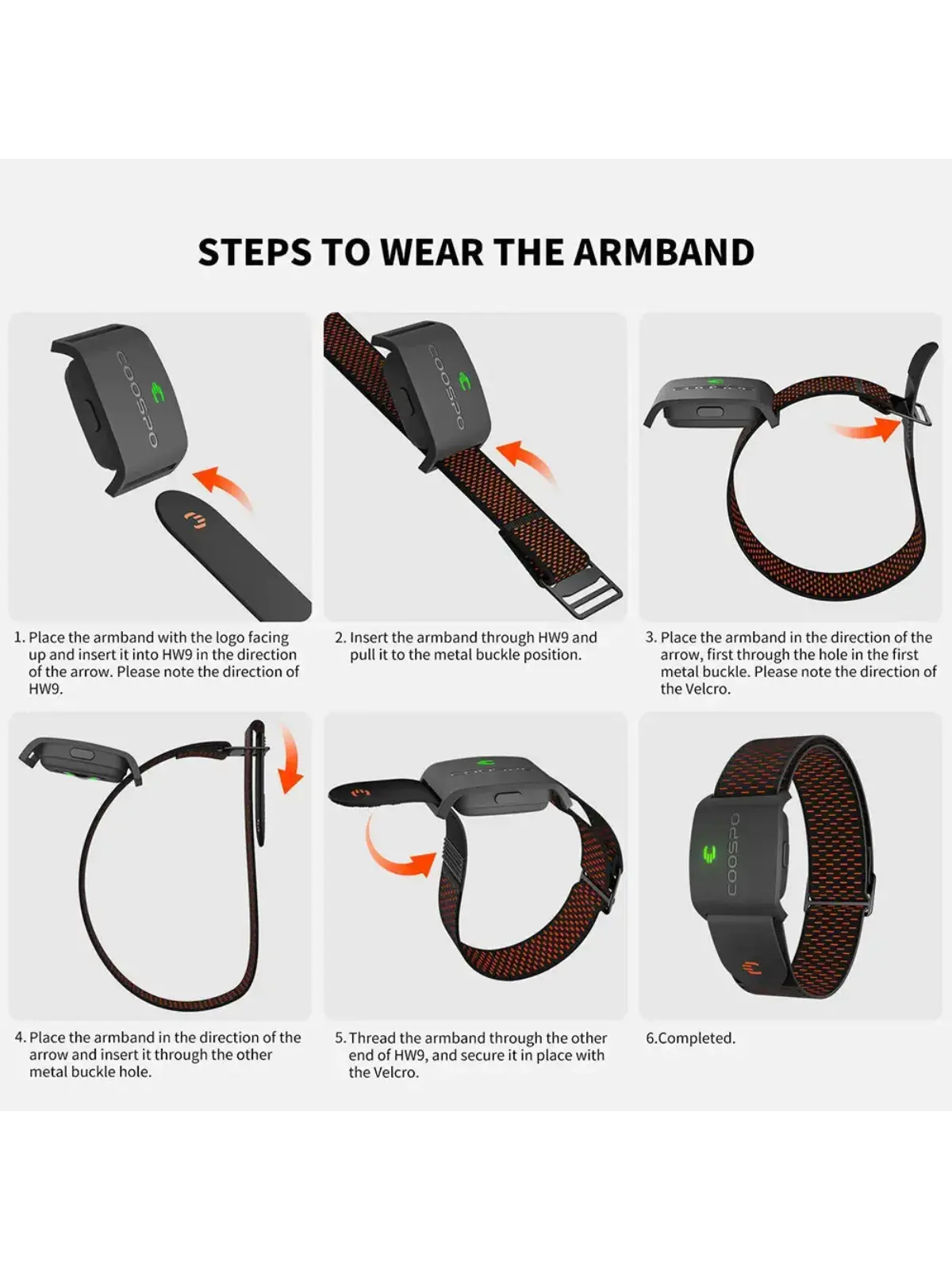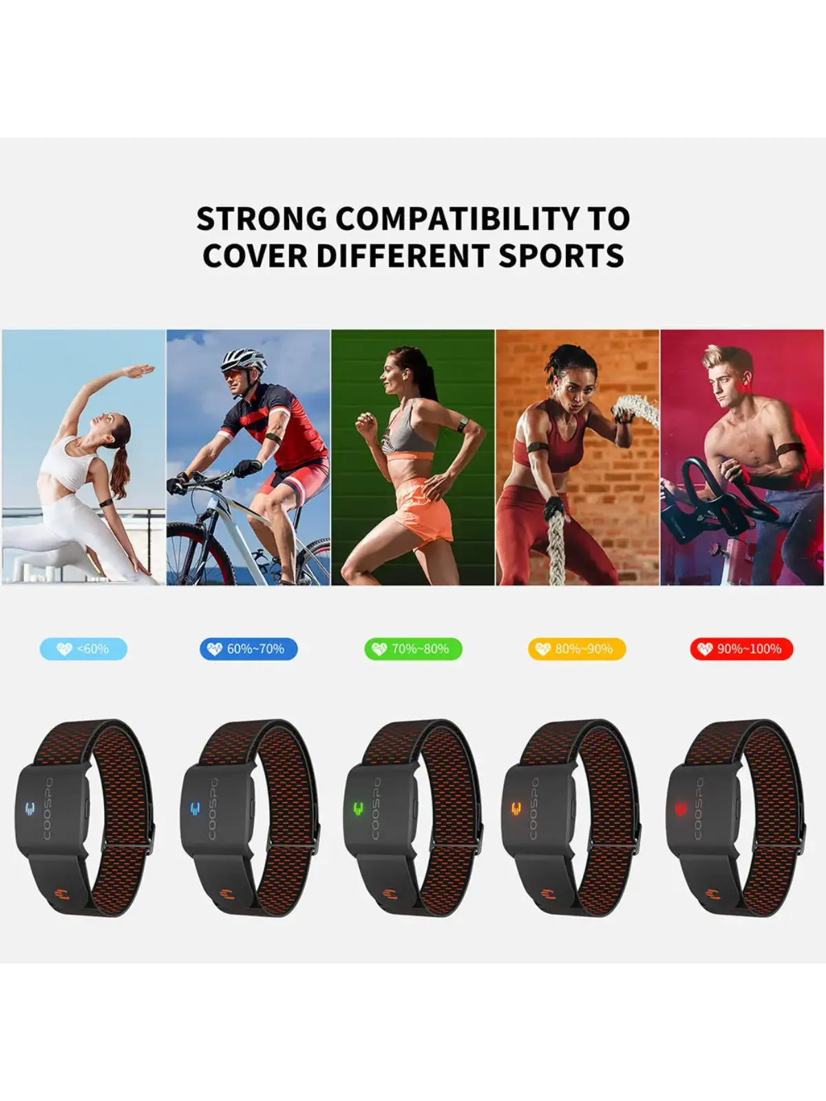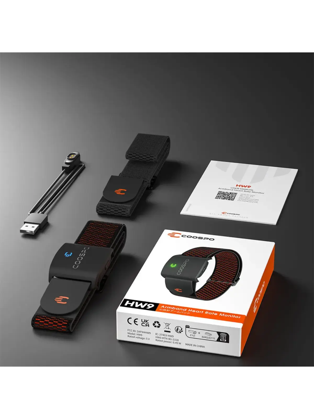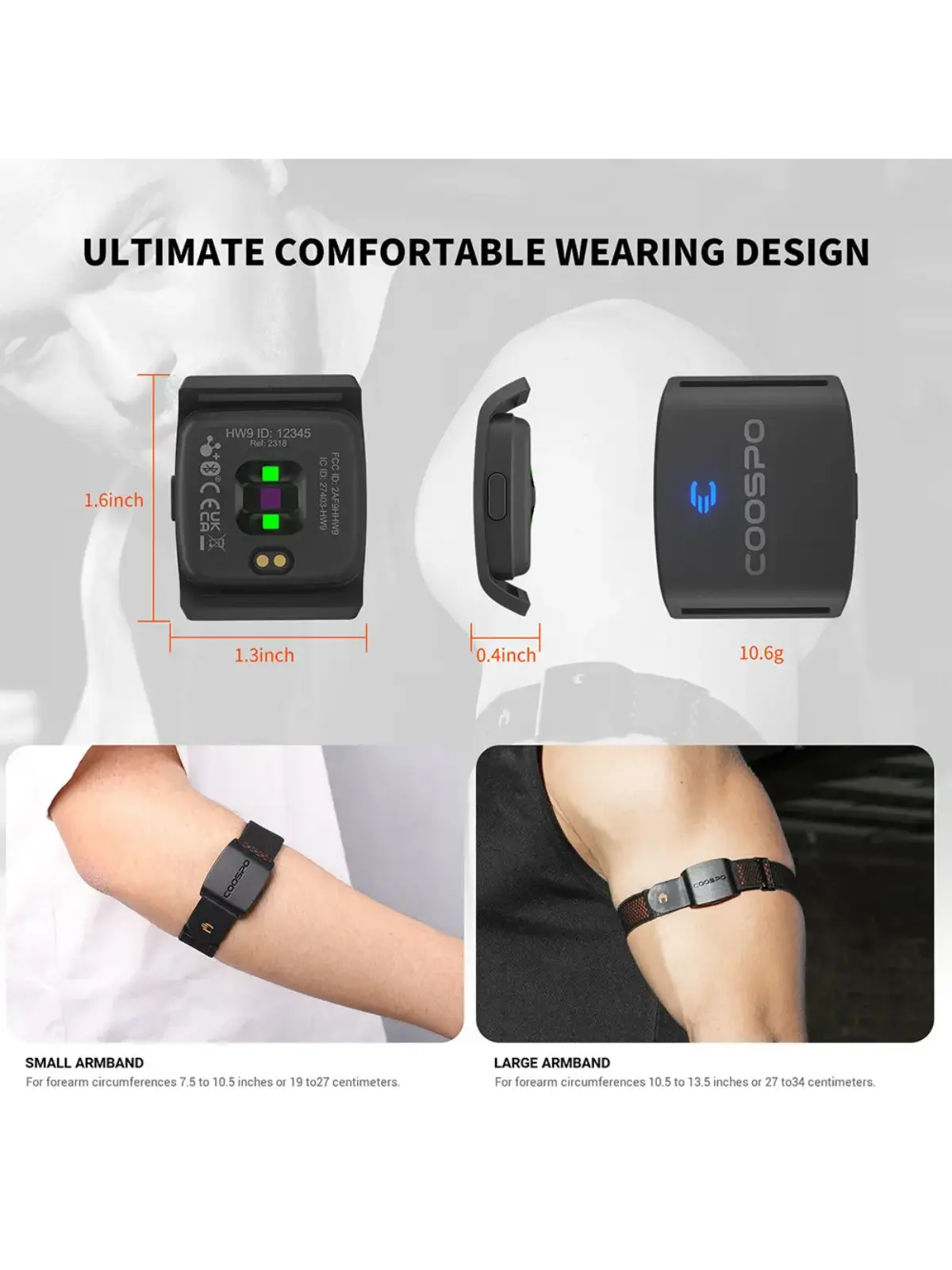 COOSPO HW9 brazalete Monitor de ritmo cardíaco es una cinta de pulso para brazo ciclismo altamente precisa y cómoda, ideal para deportistas que quieren monitorizar su frecuencia cardíaca en cada entrenamiento o salida. Este monitor de pulso para ciclismo utiliza un sensor óptico avanzado con precisión de ±1 bpm y un indicador LED de zonas de frecuencia cardíaca para ayudarte a entrenar de forma más inteligente.