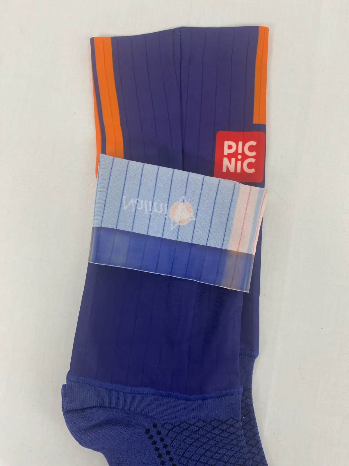 El calcetín Aero del equipo de ciclismo profesional DSM, desarrollado por Nalini, está diseñado para maximizar la eficiencia aerodinámica y mejorar el rendimiento en competición. Con una parte superior fabricada en tejido técnico acanalado, reduce la resistencia al viento y se ajusta perfectamente a la pierna, manteniéndose en su lugar durante toda la carrera.