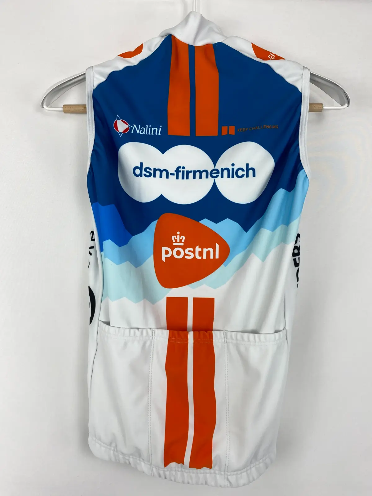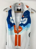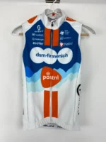 El chaleco de invierno del equipo de ciclismo profesional Team DSM es la prenda perfecta para quienes buscan protección ligera y eficaz en condiciones frías o ventosas. Diseñado para ofrecer un equilibrio ideal entre aislamiento térmico y transpirabilidad, este chaleco fino es perfecto para salidas en otoño, invierno o madrugadas frescas.