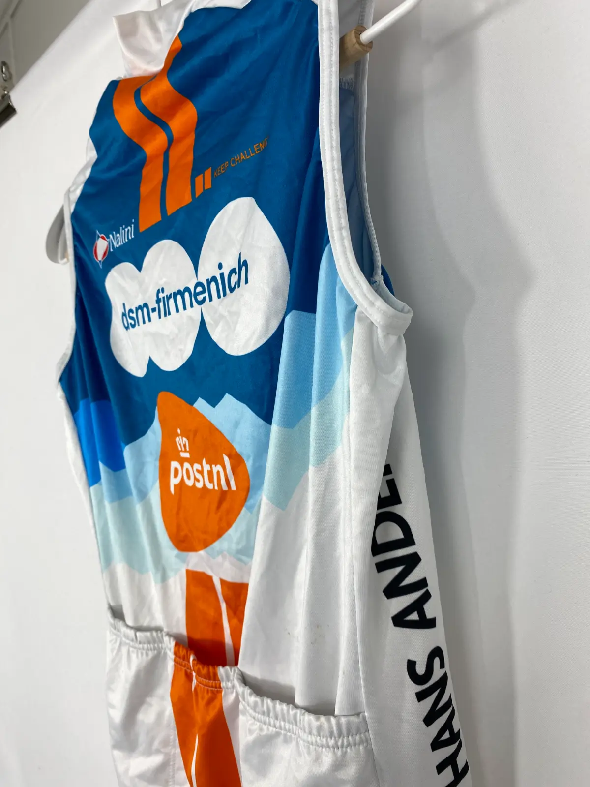 Descubre el chaleco de invierno fino del equipo de ciclismo profesional DSM, una prenda ideal para entrenamientos en clima fresco. Diseñado para ofrecer protección cortaviento sin perder transpirabilidad, este chaleco oficial combina ligereza, ajuste aerodinámico y estilo profesional. Perfecto para ciclistas exigentes que buscan el mismo rendimiento que los pros del Team DSM. ¡Hazte con el tuyo y rueda como un profesional!