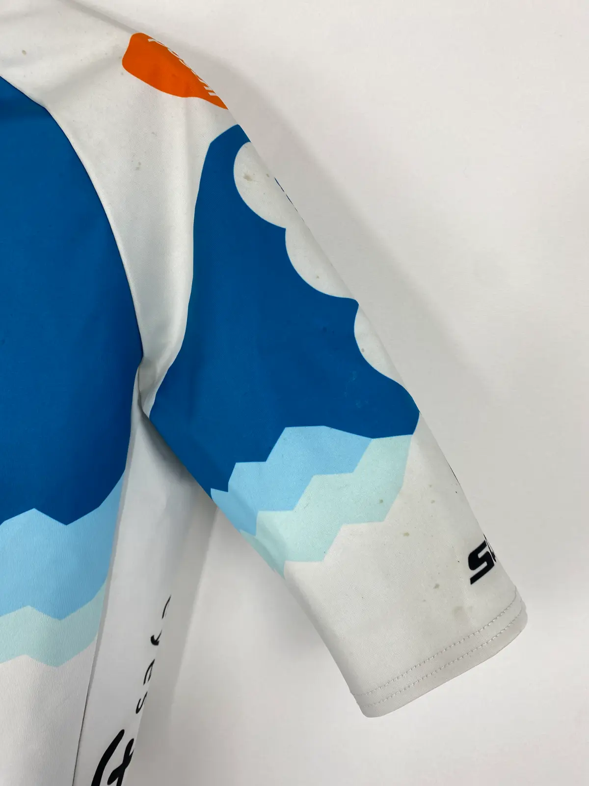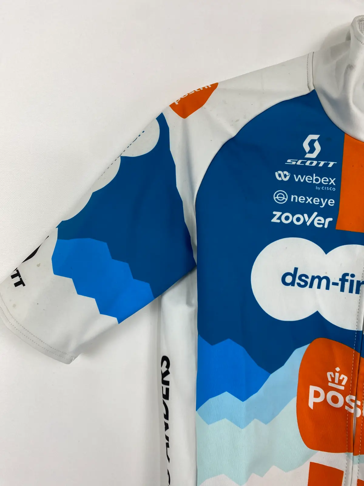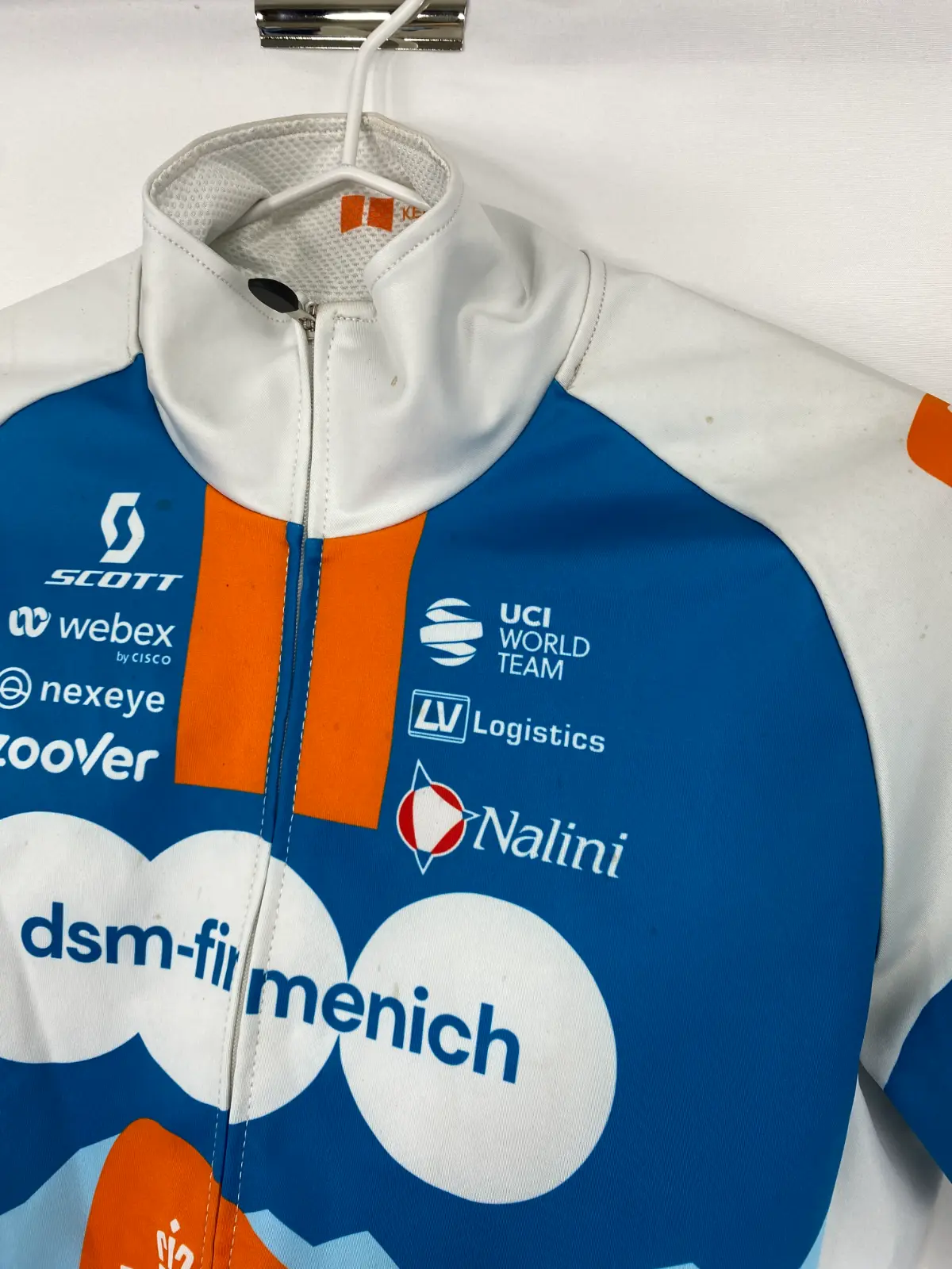 Usada por los ciclistas profesionales del equipo DSM, esta prenda combina rendimiento, comodidad y el diseño oficial del equipo. Perfecta para entrenamientos o competiciones en primavera y otoño, puede combinarse fácilmente con manguitos térmicos.