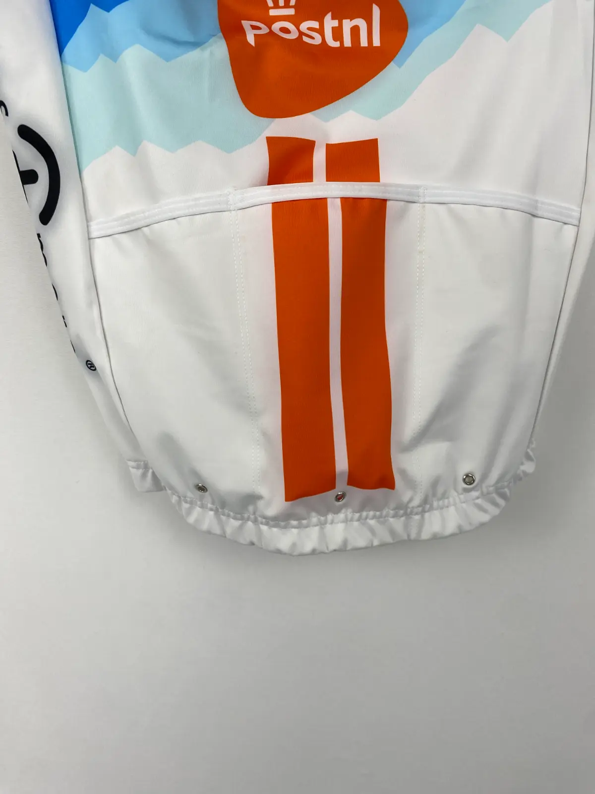 La Gabba de manga corta del Team DSM es una prenda clave para los días de clima inestable. Diseñada para ofrecer resistencia al viento y repelencia al agua, sin comprometer la aerodinámica ni la transpirabilidad, es la opción ideal para entrenamientos y competiciones en primavera, otoño o jornadas húmedas.