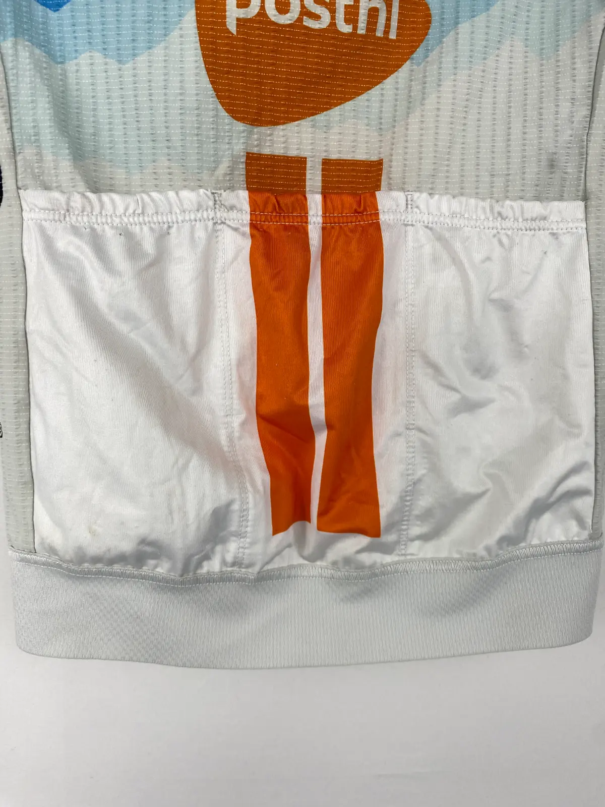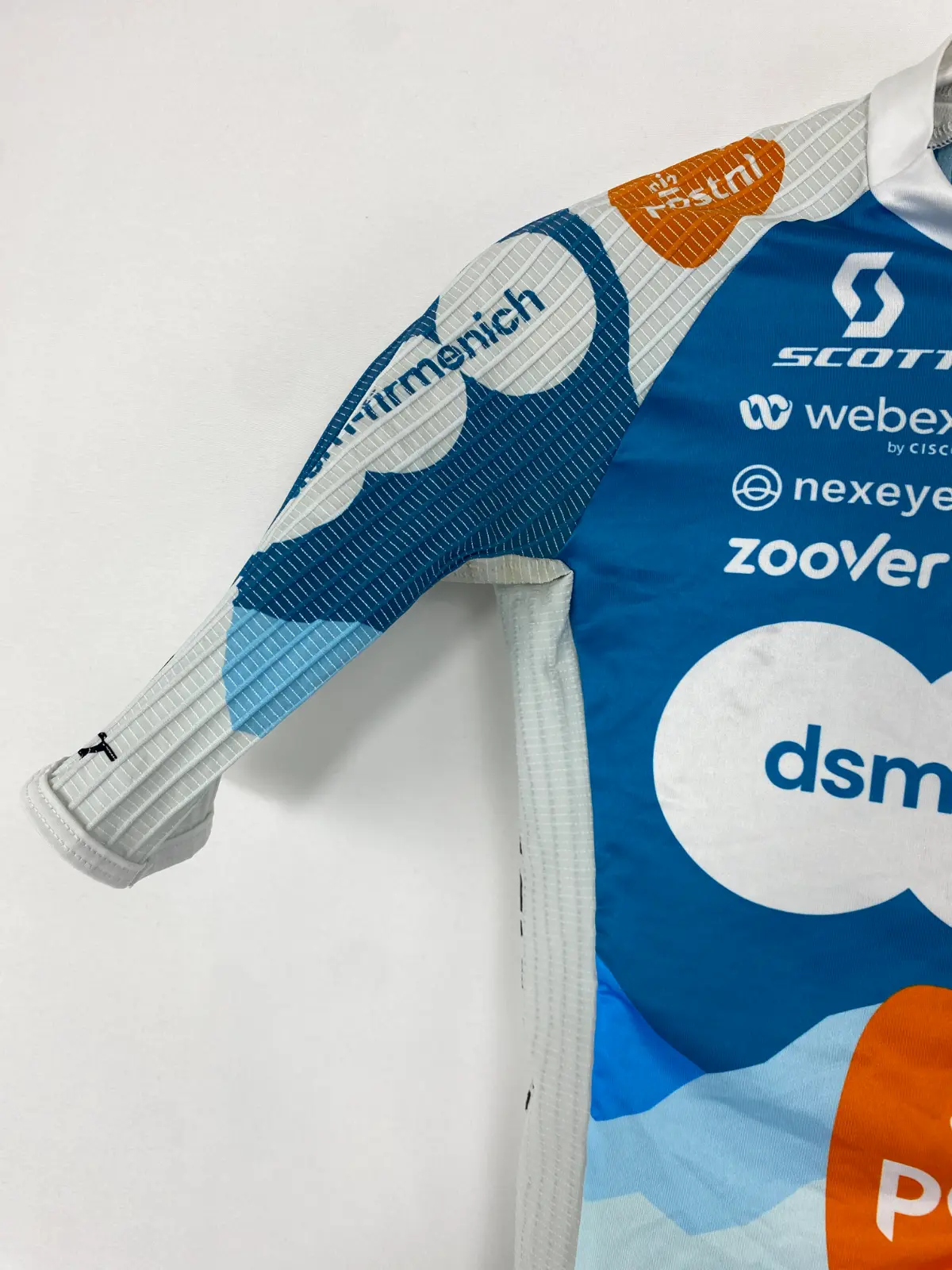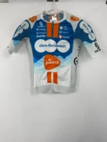 El maillot corto Dynema DSM combina lo mejor en tecnología textil y aerodinámica para ciclistas que exigen rendimiento y seguridad. Usado por el equipo profesional Team DSM, este maillot incorpora paneles de fibra Dynema®, un material ultrarresistente que protege las zonas clave en caso de caída sin comprometer ligereza ni comodidad.