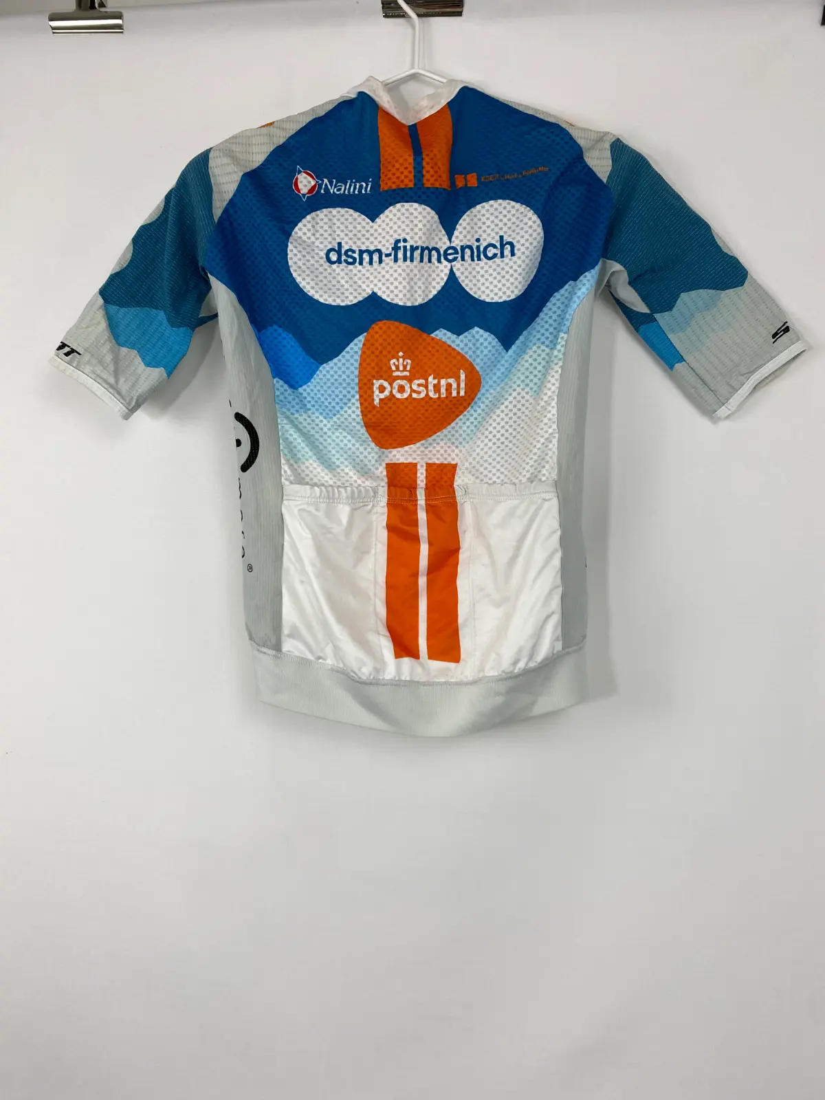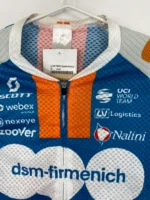 El maillot Dynema Summer del Team DSM está diseñado para ofrecer un rendimiento profesional con una protección extra. Fabricado con fibras de Dynema®, el material más resistente del mundo en relación peso/resistencia, este maillot combina ligereza, transpirabilidad y seguridad, ideal para tus rutas de verano a alta velocidad.