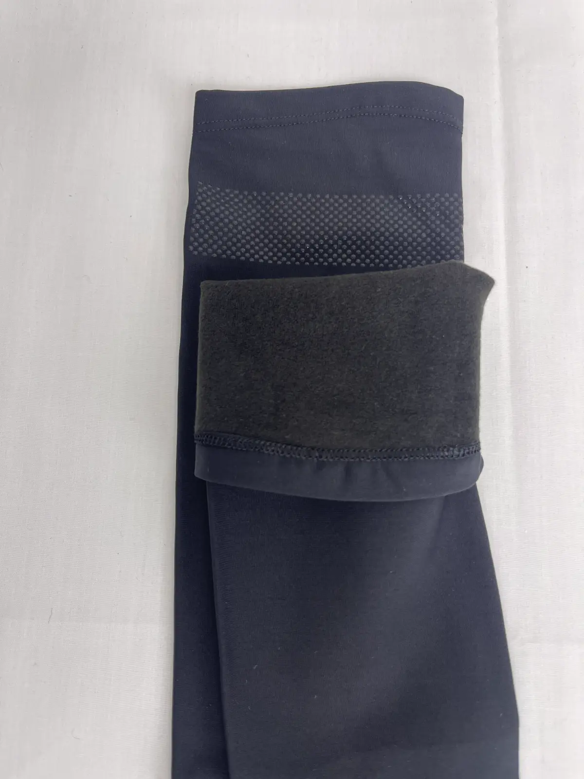 Confeccionados en tejido elástico y transpirable, se ajustan cómodamente al brazo sin comprimir en exceso, permitiendo total libertad de movimiento. Su interior afelpado proporciona una capa térmica suave, mientras que las bandas de silicona en los extremos evitan que se deslicen durante el pedaleo.