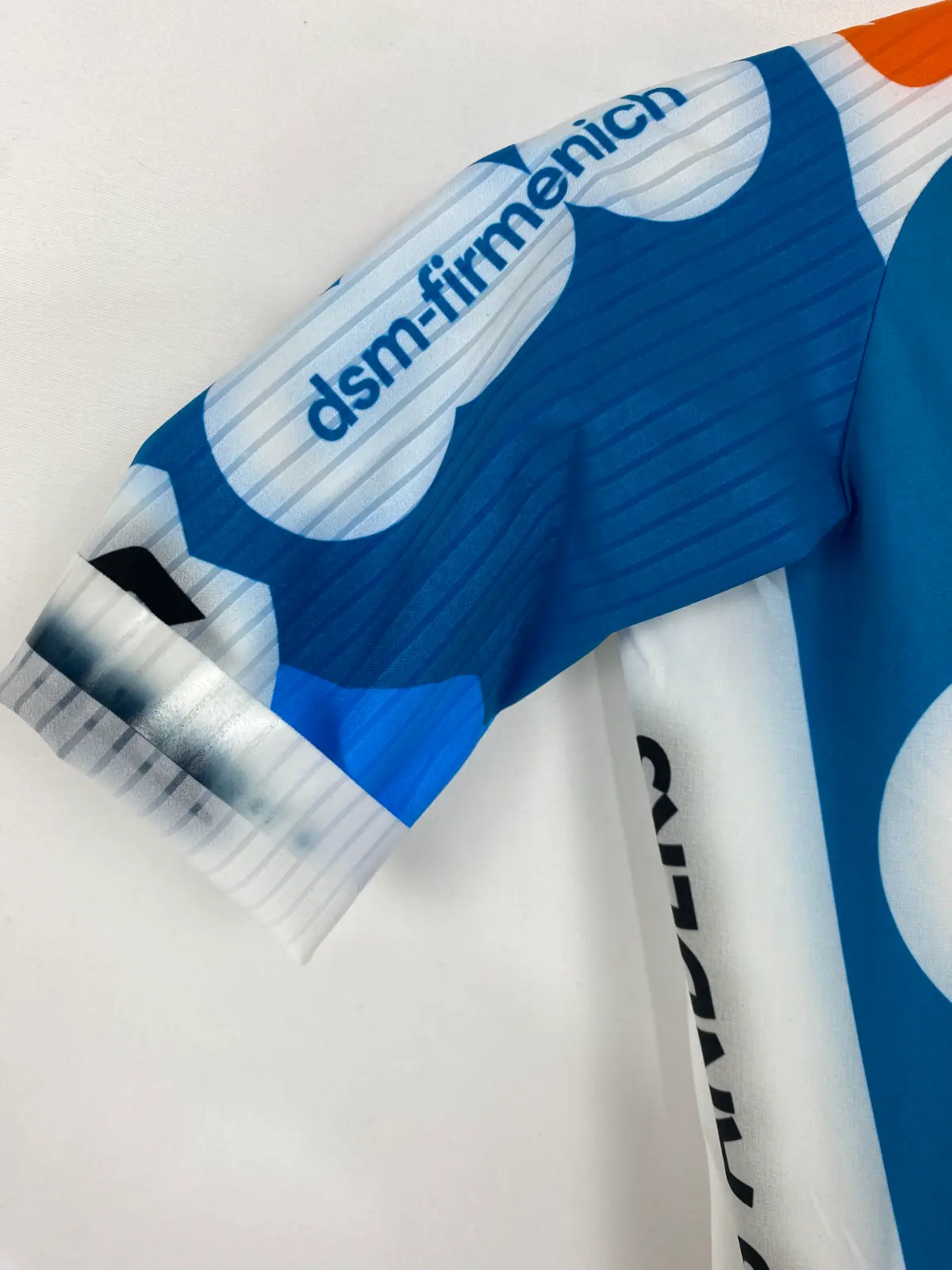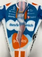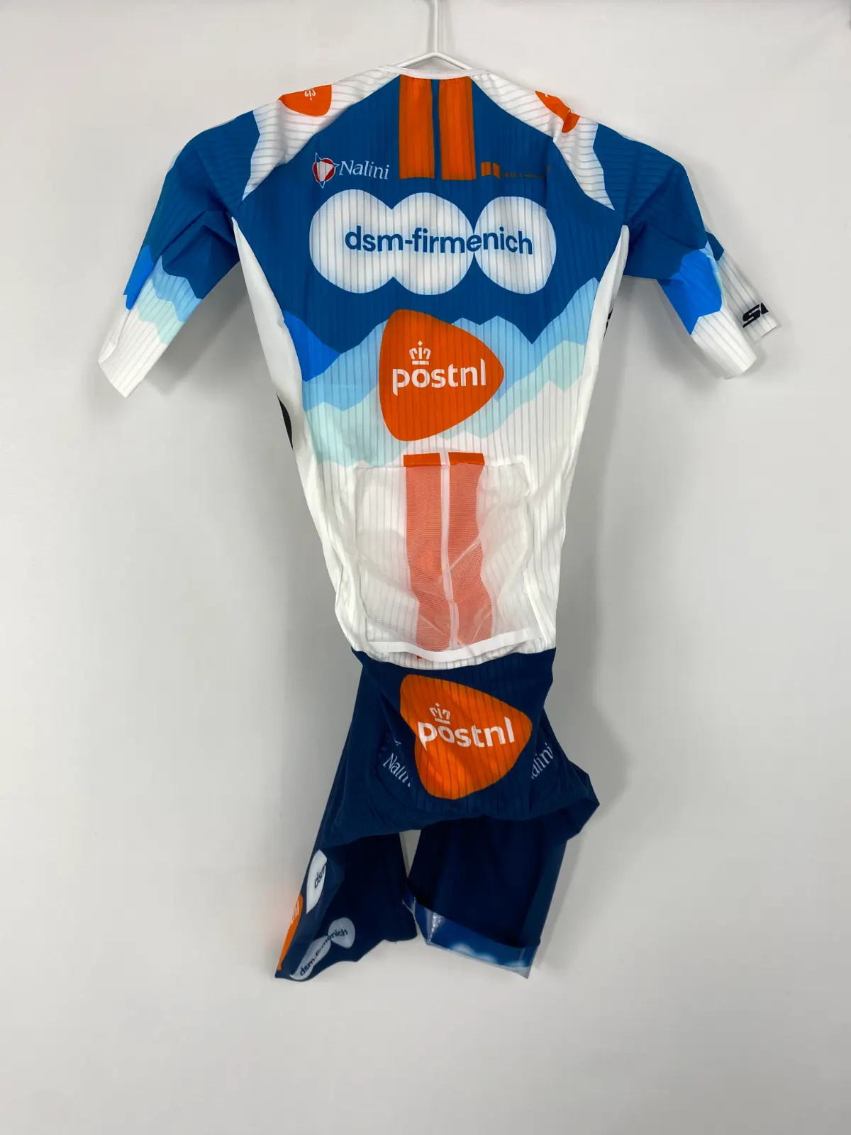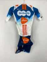 El mono crono manga corta DSM de Nalini está diseñado para ofrecer un rendimiento aerodinámico superior en contrarreloj durante climas templados o cálidos. Utilizado por el equipo de ciclismo profesional DSM, este mono combina tejidos técnicos de compresión con un diseño ergonómico que reduce la resistencia al viento y se adapta perfectamente a la posición sobre la cabra. Su corte ceñido y costuras planas garantizan comodidad y libertad de movimiento, mientras que su ligereza y transpirabilidad lo hacen ideal para competición en condiciones cálidas. Con la calidad y tecnología profesional que caracteriza a Nalini, este mono es la elección perfecta para ciclistas que buscan velocidad y precisión.