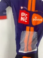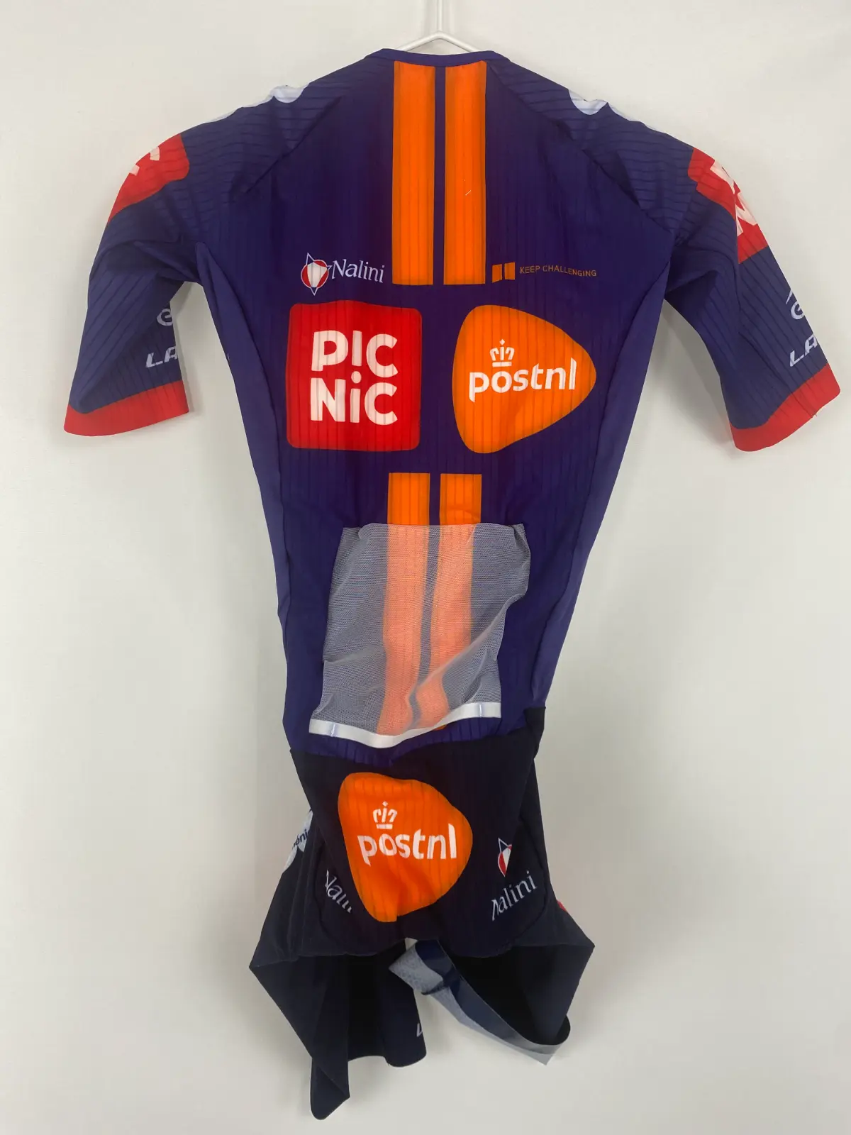 El mono de crono corto DSM de Nalini es una prenda diseñada para el máximo rendimiento aerodinámico en contrarreloj. Utilizado por el equipo de ciclismo profesional DSM, está confeccionado con tejidos técnicos de compresión y estructura ergonómica para reducir la resistencia al aire y mejorar la eficiencia del pedaleo. Su ajuste ceñido tipo segunda piel, las costuras planas y los acabados limpios lo convierten en una pieza clave para ganar segundos en cada kilómetro. Con la calidad italiana de Nalini, este traje de crono corto es ideal para ciclistas que buscan velocidad, precisión y tecnología profesional.