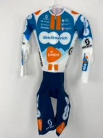 Optimiza tu rendimiento con el mono crono de manga larga del equipo DSM, diseñado para la máxima aerodinámica y comodidad. Usado por ciclistas profesionales en competiciones UCI, este traje se ajusta como una segunda piel y mejora la eficiencia en contrarreloj. Fabricado con materiales de alta tecnología, ofrece ventilación, compresión y estilo profesional. Ideal para ciclistas que buscan velocidad y rendimiento.