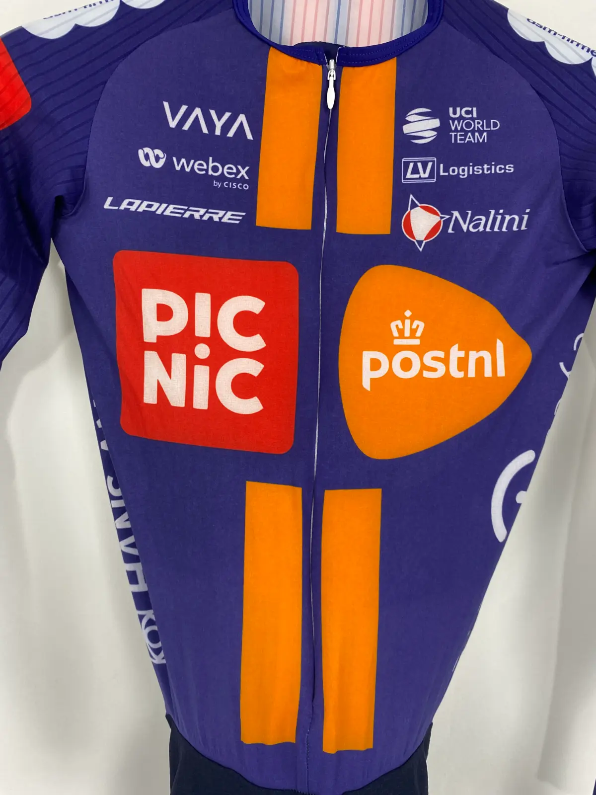 El mono largo de crono DSM de Nalini está diseñado para ofrecer máxima aerodinámica y rendimiento en condiciones frescas, sin comprometer la ligereza ni la transpirabilidad. Utilizado por el equipo de ciclismo profesional DSM, combina tejidos técnicos de compresión con un diseño ajustado que minimiza la resistencia al viento. Su estructura ergonómica permite una posición óptima sobre la cabra, mientras que la badana de alto rendimiento garantiza comodidad en esfuerzos prolongados. Ideal para contrarreloj y días de competición con temperaturas moderadas, este mono largo de crono Nalini es pura tecnología profesional al servicio de la velocidad.