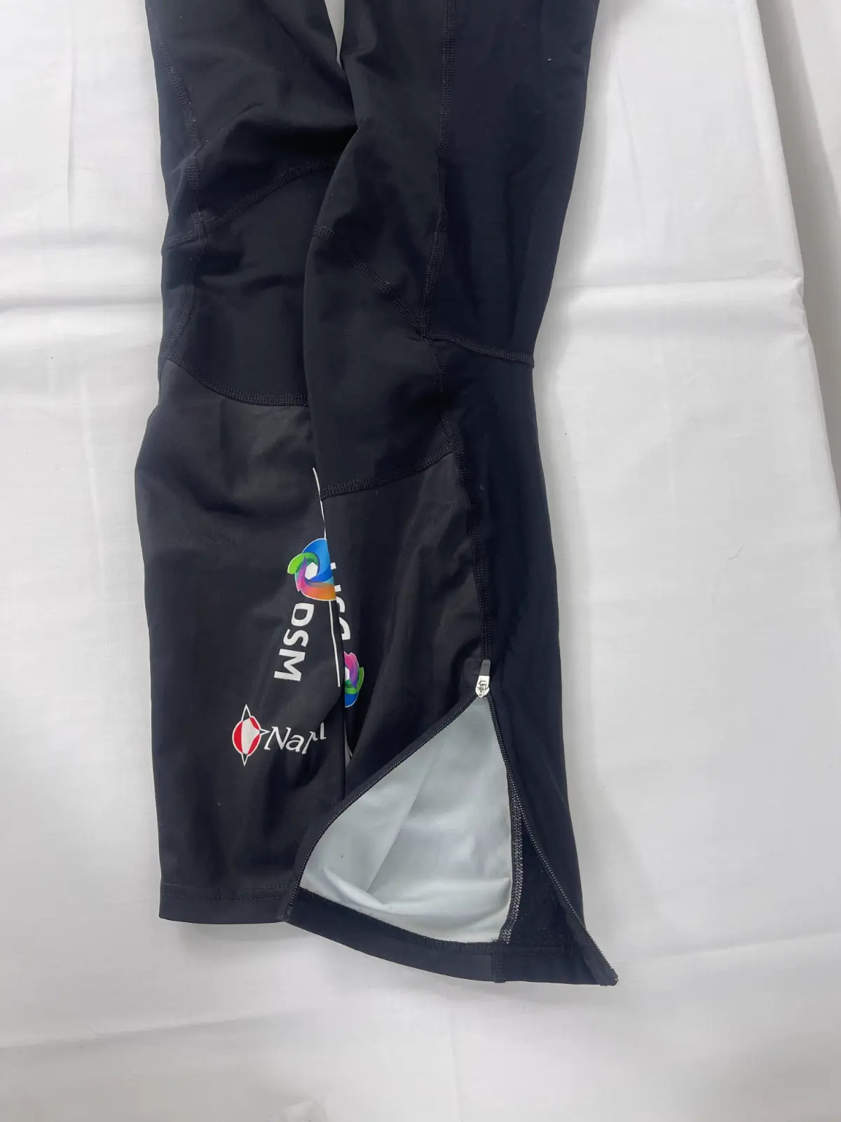 Las perneras de lluvia del equipo de ciclismo profesional DSM, fabricadas por Nalini, están diseñadas para ofrecer máxima protección en condiciones húmedas y frías. Confeccionadas con materiales impermeables y cortaviento, estas perneras técnicas mantienen las piernas secas y calientes durante entrenamientos o competiciones bajo la lluvia. Su ajuste anatómico y costuras selladas aseguran comodidad y rendimiento sin restricciones. Las perneras de lluvia Nalini DSM son el complemento ideal para ciclistas que enfrentan el mal tiempo con equipamiento profesional.