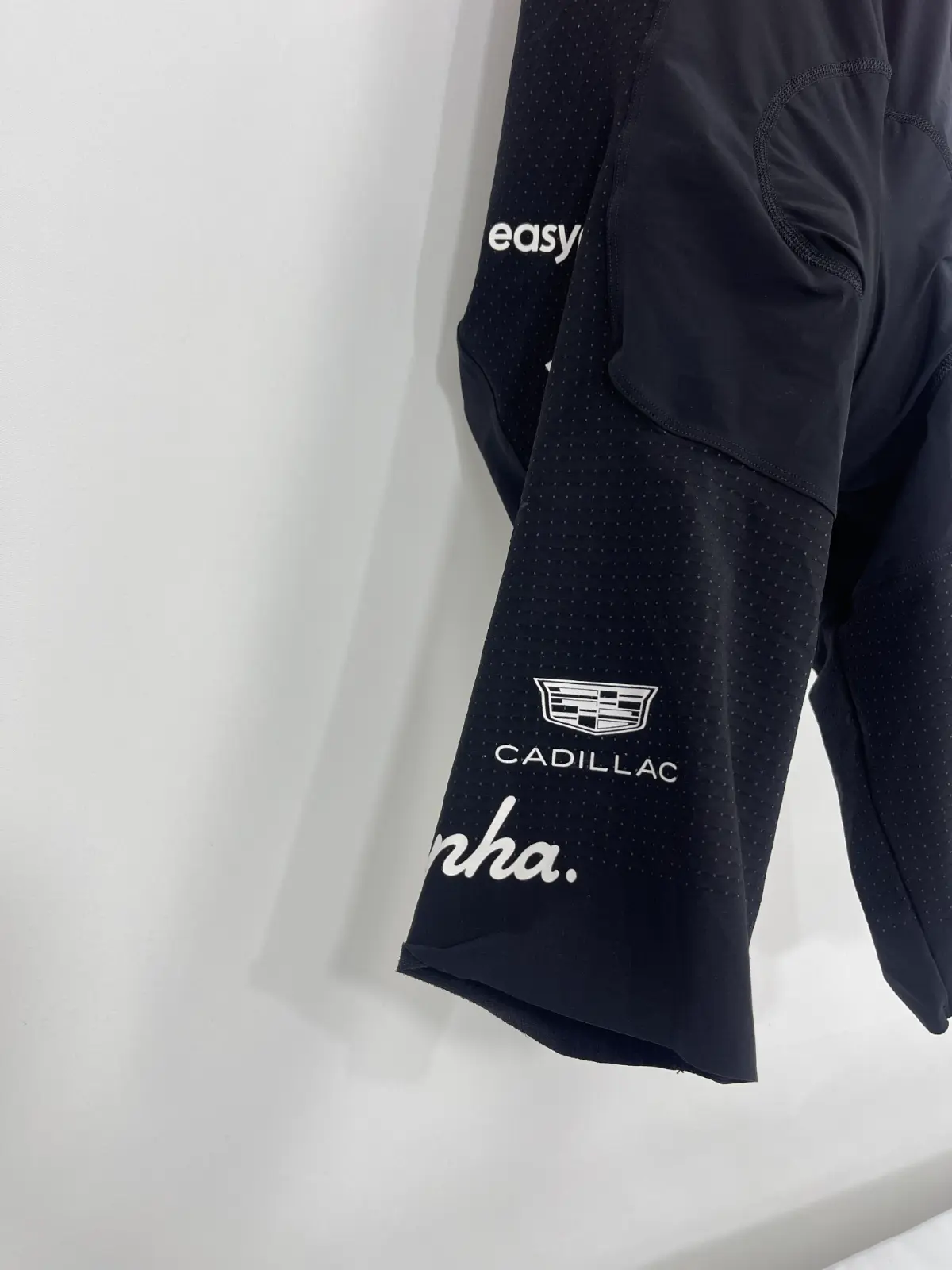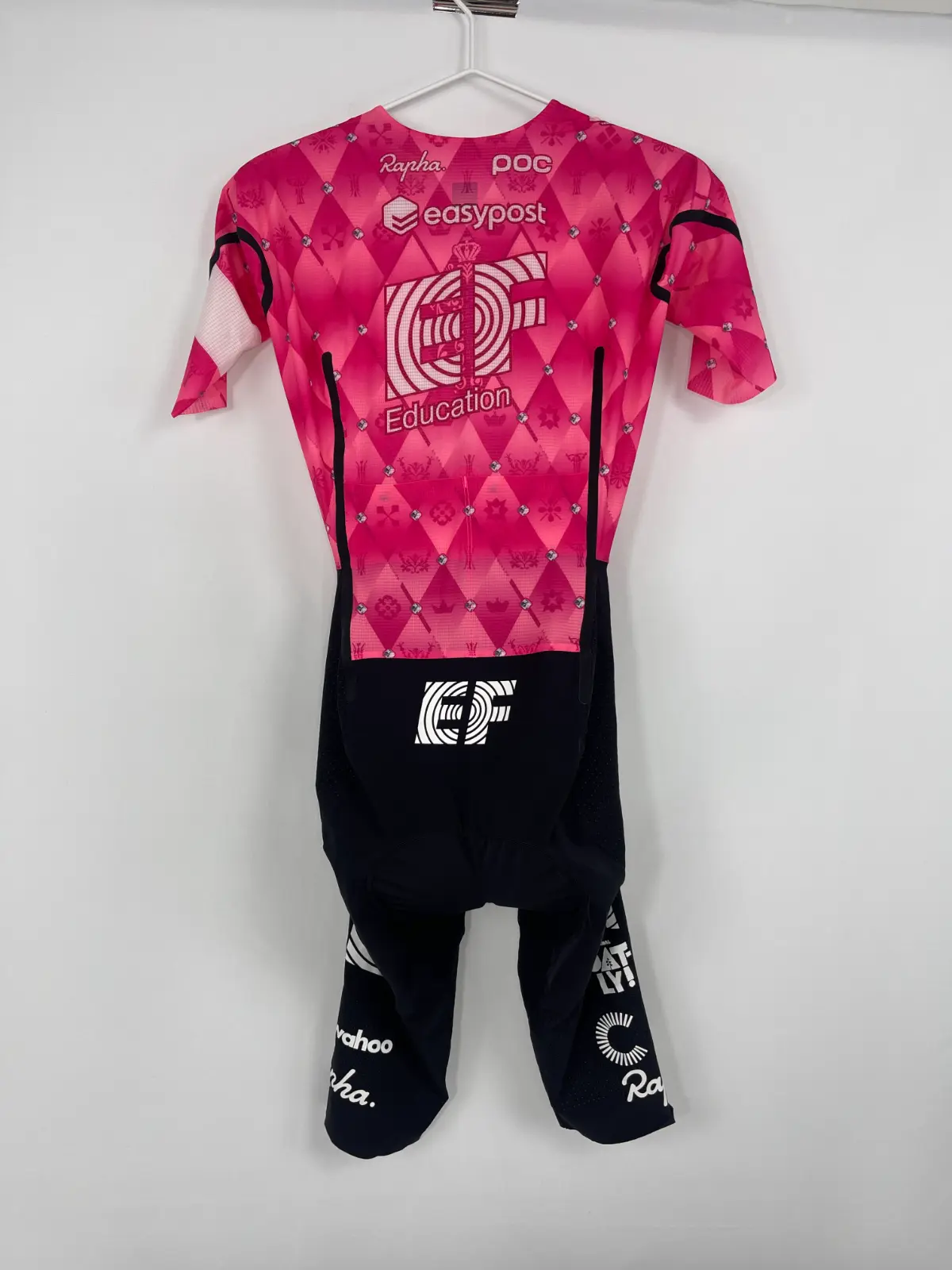 Este mono Rapha Education First destaca por su diseño exclusivo y elegante, inspirado en los uniformes del equipo WorldTour, combinando funcionalidad, protección y estética premium en una sola prenda. Perfecto para ciclistas que buscan rendimiento profesional y autenticidad de equipo en cada salida.