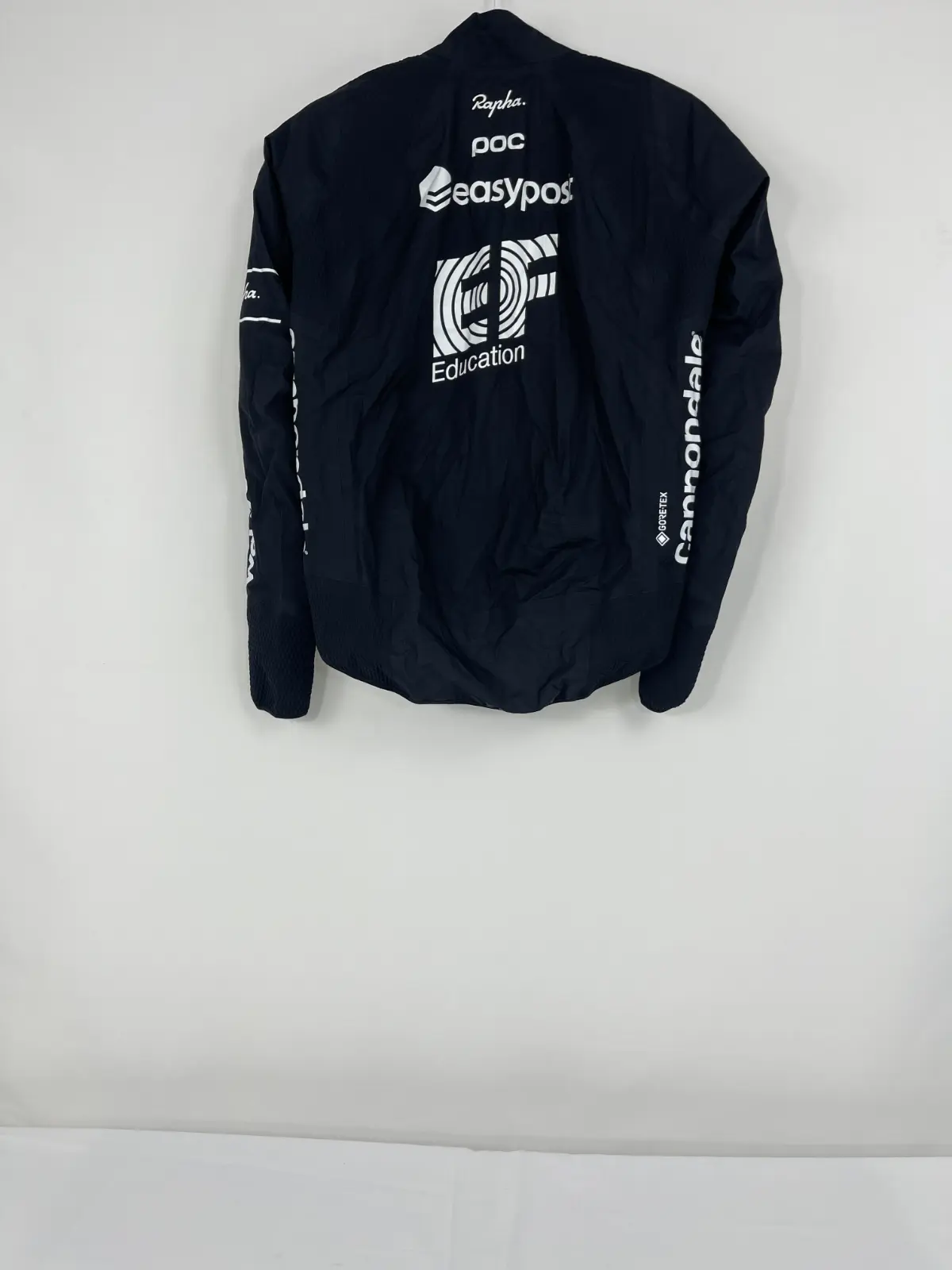 La Men Pro Team Lightweight Gore-Tex Jacket de Rapha, diseñada para el equipo profesional Education First, ofrece una protección impermeable ligera y transpirabilidad avanzada. Fabricada con tejido Gore-Tex de alto rendimiento, esta chaqueta es ideal para enfrentar condiciones climáticas adversas sin sacrificar movilidad ni comodidad. Su diseño técnico y ajuste ergonómico, junto con los detalles exclusivos del Education First, hacen de esta chaqueta una prenda imprescindible para ciclistas que buscan resistencia al agua, ligereza y estilo profesional.