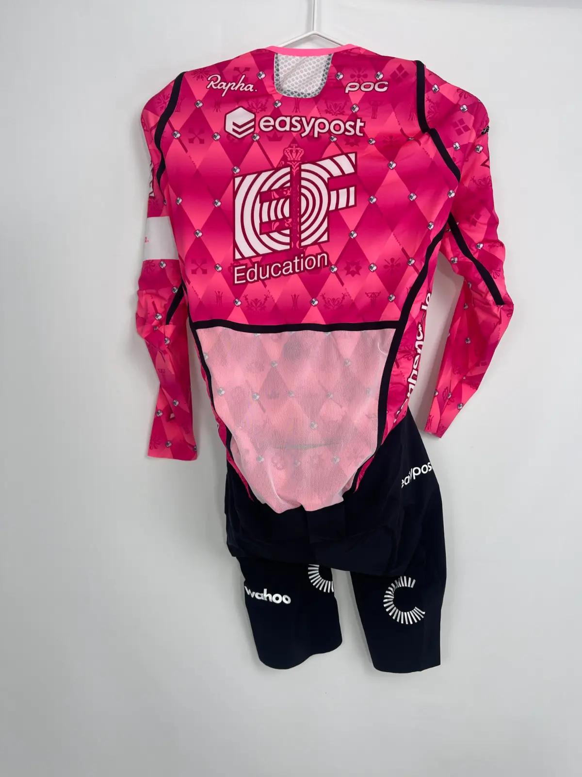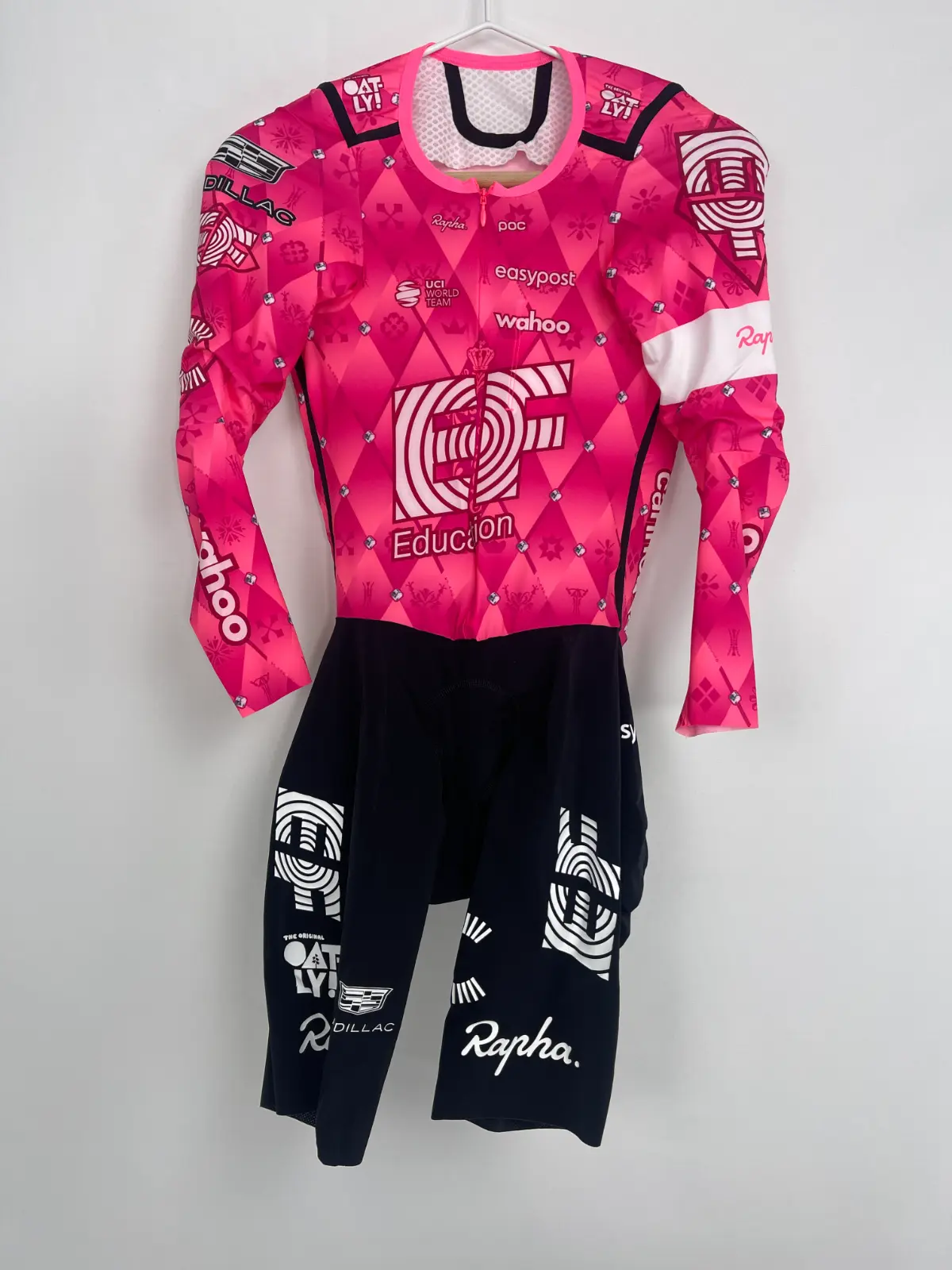 El mono largo de contrarreloj de manga larga Rapha Education First está diseñado para ofrecer máximo rendimiento aerodinámico en competición. Utilizado por el equipo profesional Education First, destaca por su ajuste ceñido tipo segunda piel, que reduce la resistencia al viento y mejora la eficiencia sobre la bicicleta. Fabricado con tejidos técnicos de alto rendimiento, proporciona ligereza, transpirabilidad y una excelente gestión de la humedad incluso a alta intensidad. Sus costuras planas, mangas largas optimizadas para la aerodinámica y acabados profesionales garantizan comodidad, libertad de movimiento y prestaciones de nivel WorldTour para ciclistas que buscan velocidad, precisión y calidad Rapha.