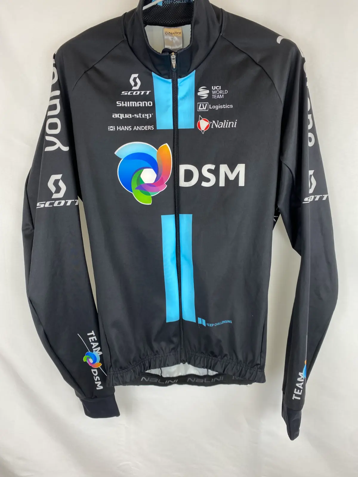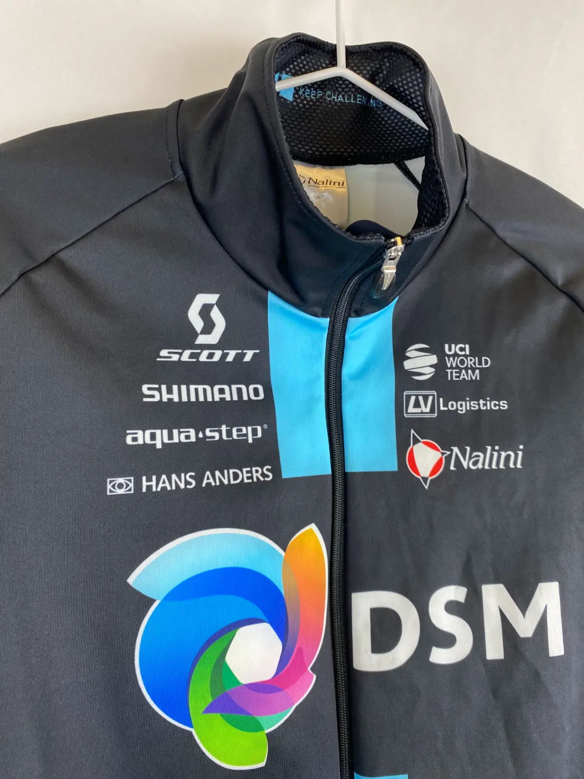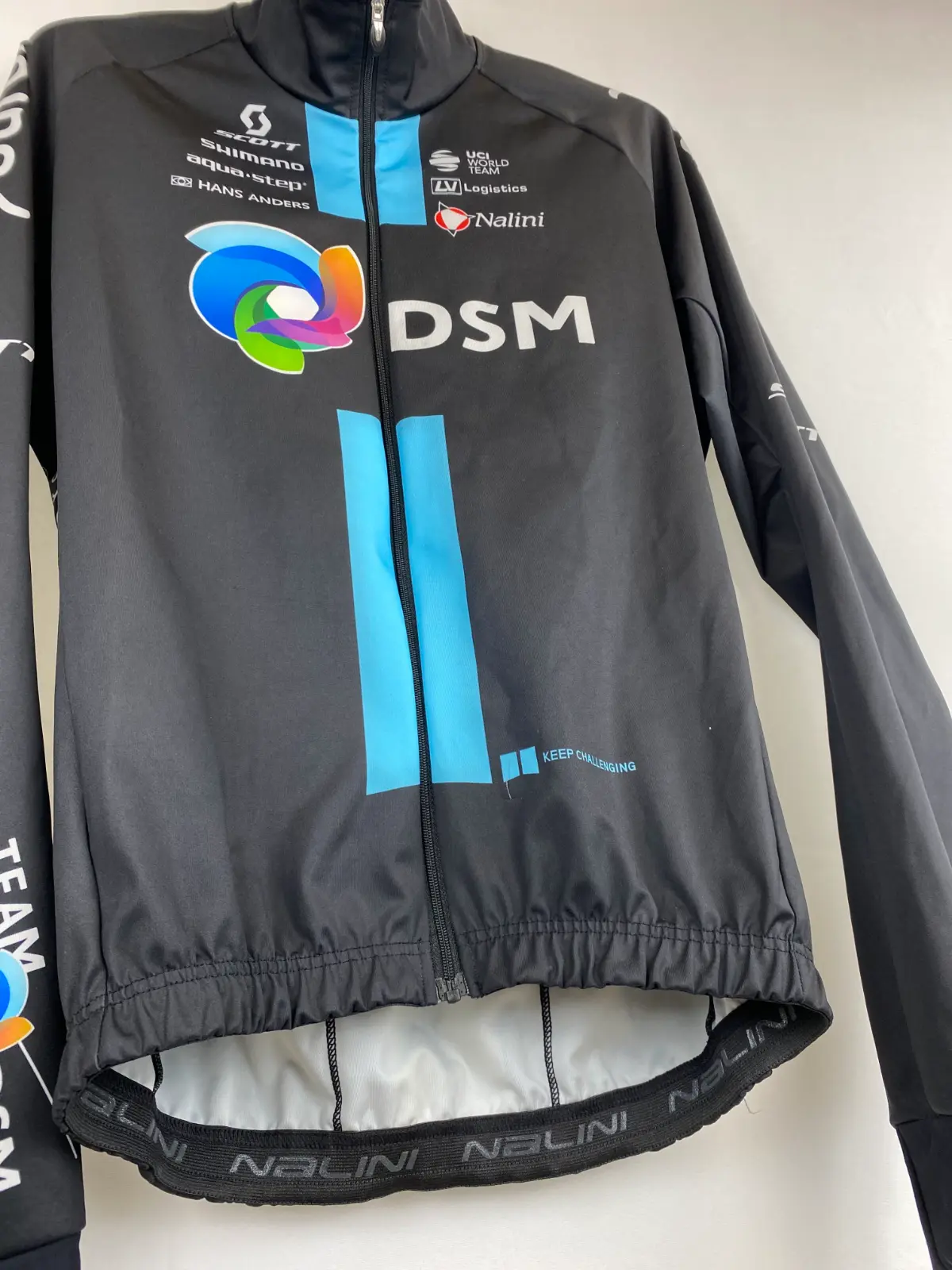 La gaba fina de manga larga DSM Nalini es una prenda imprescindible para entrenamientos y competiciones en condiciones variables de viento y lluvia ligera. Utilizada por el equipo de ciclismo profesional DSM, esta gaba de ciclismo Nalini combina protección cortaviento, ligereza y excelente transpirabilidad, ideal para descensos o salidas en entretiempo.