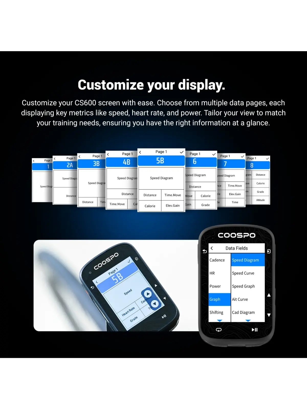 Su diseño ligero y compacto, junto con almacenamiento interno de 8 GB para mapas y rutas, lo convierte en ideal tanto para rutas largas como para entrenamiento diario. Compatible con sensores ANT+ y Bluetooth (cadencia, velocidad, frecuencia cardíaca y potencia), el GPS Coospo CS600 te permite personalizar tus métricas y visualizar más de 150 tipos de datos en pantalla.