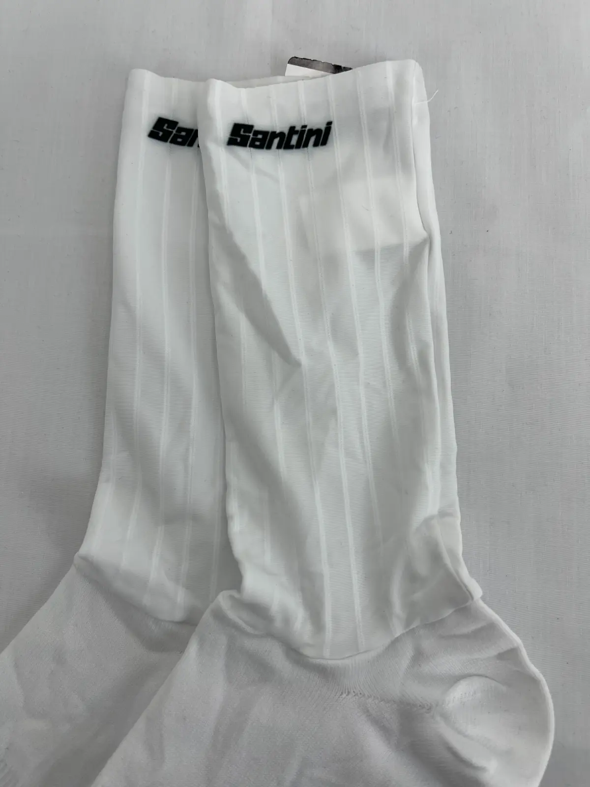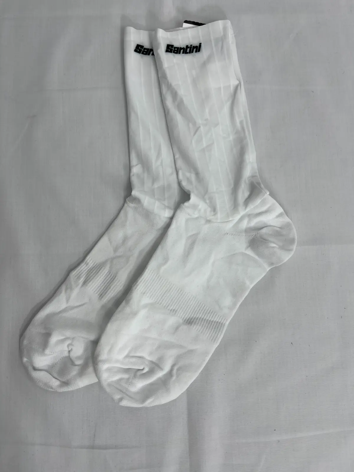 Calcetín aero Santini en color blanco, diseñado para mejorar el rendimiento en carretera gracias a su estructura aerodinámica que reduce la resistencia al viento. Fabricado con tejidos técnicos ligeros y transpirables, garantiza una excelente evacuación del sudor y un ajuste ceñido que se mantiene estable durante toda la salida. Su diseño ergonómico y costuras planas aportan comodidad incluso en entrenamientos y competiciones exigentes. Ideal para ciclistas que buscan eficiencia, confort y estilo limpio con la calidad y el saber hacer de Santini.