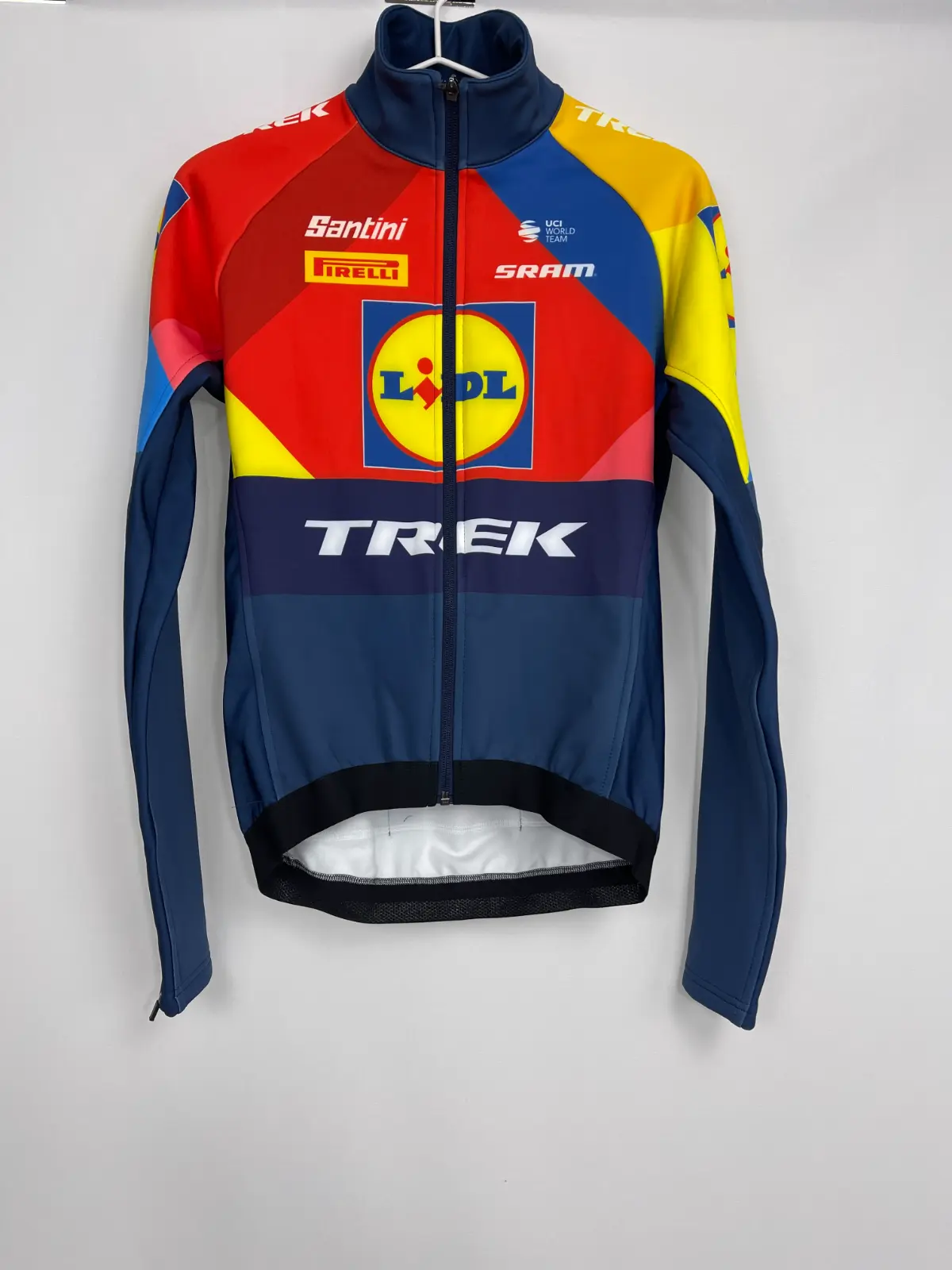 La chaqueta de invierno del equipo de ciclismo profesional Lidl‑Trek de la marca Santini es una prenda técnica diseñada para ofrecer protección térmica y confort durante tus salidas más frías. Equipamiento utilizado por los pros, esta chaqueta te ayuda a mantener el calor, protegerte del viento y del frío y mejorar tu rendimiento en rutas de otoño e invierno. Con diseño ergonómico específico para ciclismo y los colores y logos oficiales del equipo Lidl‑Trek, combina estilo profesional con funcionalidad en cada salida bajo bajas temperaturas.