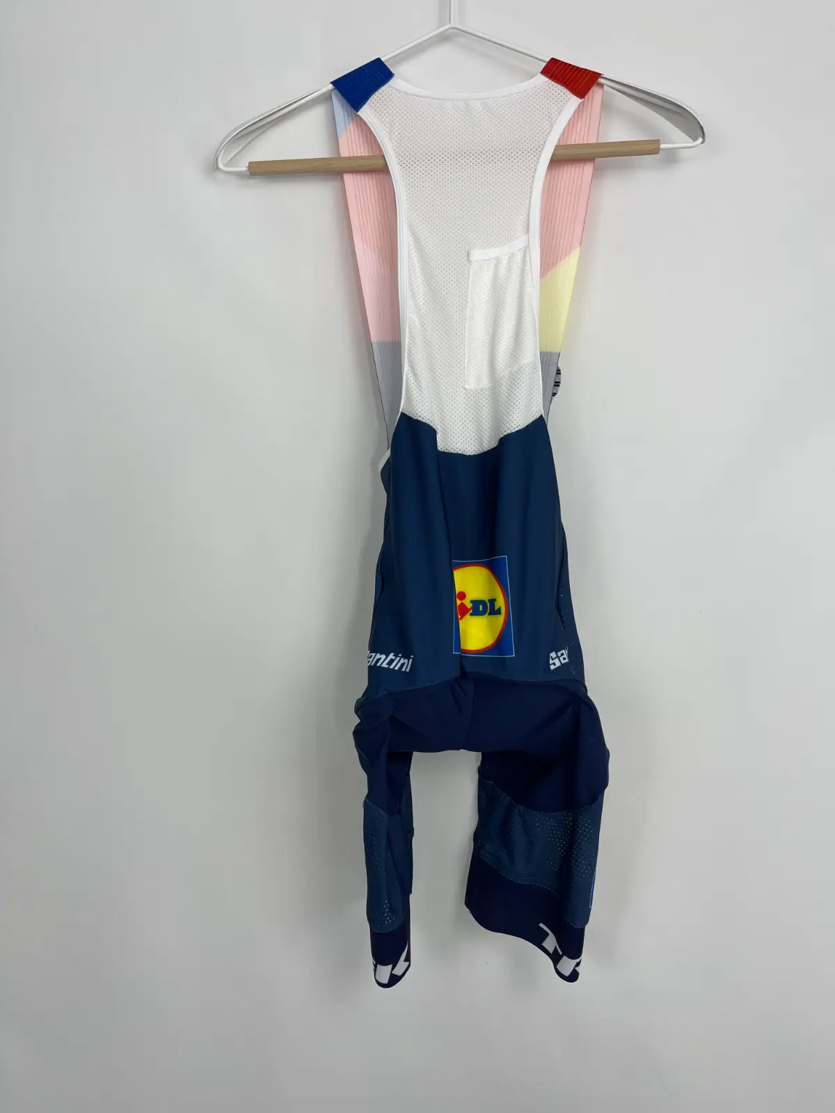 El Culote del equipo de ciclismo profesional Lidl-Trek de la marca Santini es un culote corto de rejilla con tirantes diseñado para ofrecer ventilación, confort y rendimiento en rutas de verano. Con tirantes de malla transpirables que mejoran la circulación del aire y un acolchado ergonómico, este culote garantiza comodidad en salidas largas y entrenamientos intensos. Su ajuste ceñido y puños con agarre mantienen la prenda en su lugar incluso en esfuerzos exigentes. Una opción ideal para ciclistas que buscan calidad profesional y estilo oficial del equipo Lidl-Trek.