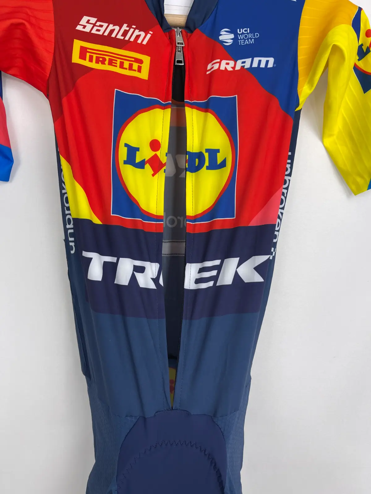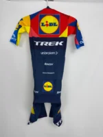 Mono corto de ruta del equipo de ciclismo profesional Lidl Trek, fabricado por Santini, pensado para ciclistas que buscan el máximo rendimiento en carretera. Confeccionado con tejidos técnicos de alta compresión, ofrece un ajuste aerodinámico que mejora la eficiencia del pedaleo y reduce la fatiga muscular. Su badana de alto rendimiento, desarrollada para competición, garantiza confort incluso en salidas largas, mientras que las costuras planas y el diseño ergonómico aseguran una total libertad de movimiento. Inspirado en el equipamiento oficial del equipo WorldTour Lidl Trek, este mono corto Santini combina tecnología profesional, comodidad y diseño italiano para rodar al más alto nivel.
