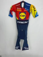 Mono corto de ruta del equipo de ciclismo profesional Lidl Trek, fabricado por Santini, pensado para ciclistas que buscan el máximo rendimiento en carretera. Confeccionado con tejidos técnicos de alta compresión, ofrece un ajuste aerodinámico que mejora la eficiencia del pedaleo y reduce la fatiga muscular. Su badana de alto rendimiento, desarrollada para competición, garantiza confort incluso en salidas largas, mientras que las costuras planas y el diseño ergonómico aseguran una total libertad de movimiento. Inspirado en el equipamiento oficial del equipo WorldTour Lidl Trek, este mono corto Santini combina tecnología profesional, comodidad y diseño italiano para rodar al más alto nivel.