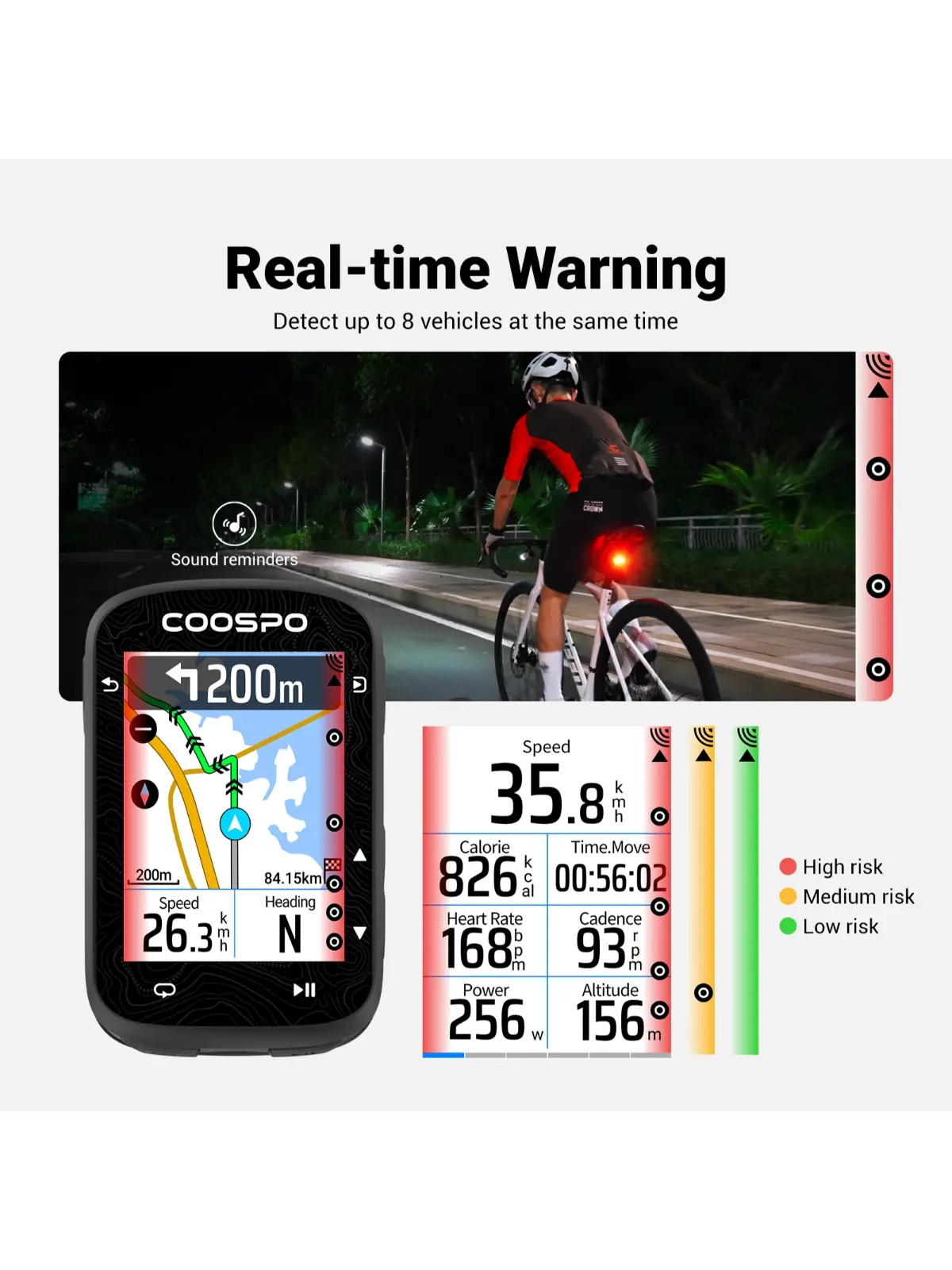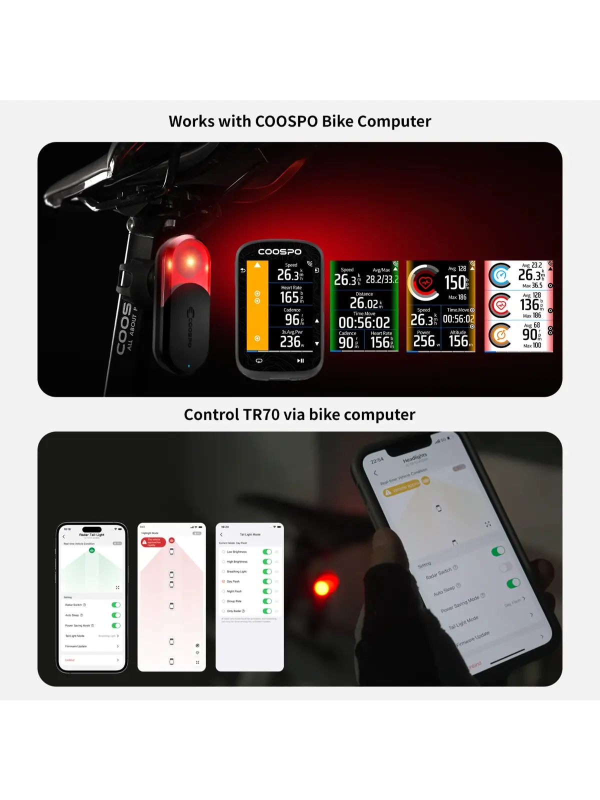 Luz trasera ciclismo con radar Coospo TR70