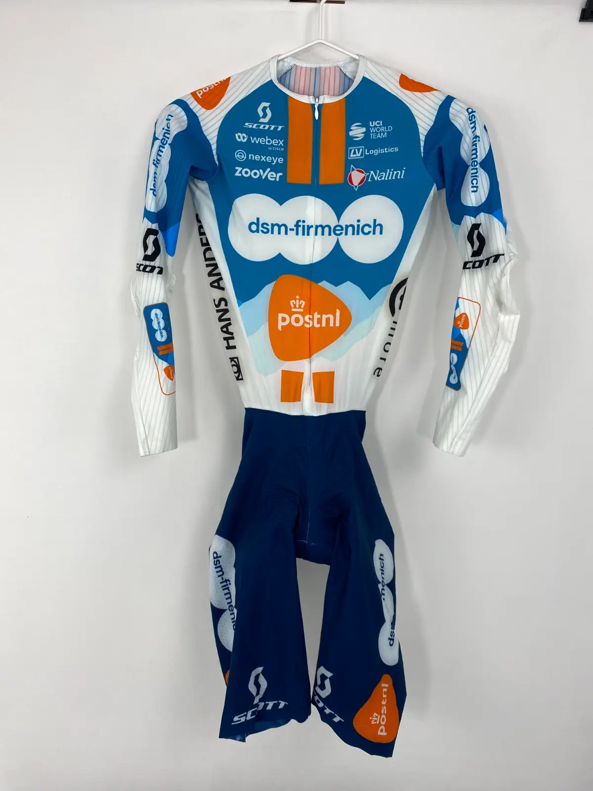 El mono crono manga corta DSM está diseñado para ciclistas de élite que buscan maximizar su rendimiento en contrarreloj y pruebas de velocidad. Este mono, utilizado por el equipo profesional DSM, combina un ajuste aerodinámico con tecnología de vanguardia, ofreciendo una mayor eficiencia en cada pedaleo. Con su tejido de alta compresión, reduce la resistencia al aire, mientras que las mangas cortas y el diseño ergonómico aseguran comodidad y libertad de movimiento. Ideal para quienes buscan un rendimiento superior en cada competición. ¡Lleva el espíritu del equipo DSM y alcanza tus metas más ambiciosas!