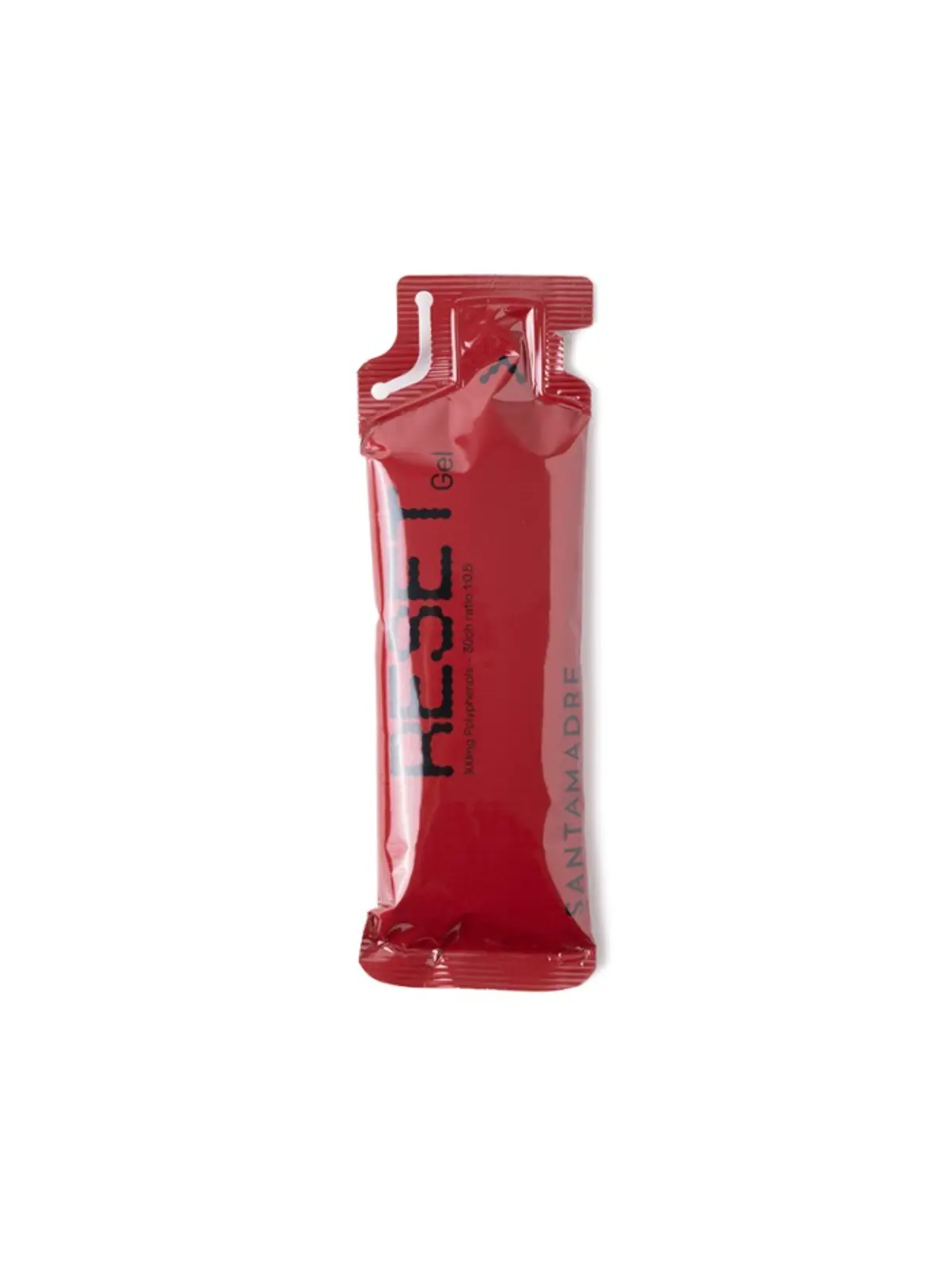 El RESET Gel de Santa Madre es un gel energético de nueva generación diseñado para retrasar la fatiga y mantener el rendimiento durante más tiempo. Aporta 30 g de carbohidratos de absorción optimizada, 300 mg de polifenoles de cereza ácida (con efecto antioxidante y antiinflamatorio) y 100 mg de sodio para mejorar la hidratación y prevenir calambres.